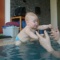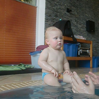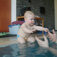 Sie lernen mit allerlei Schwimmhilfen das Becken zu erobern